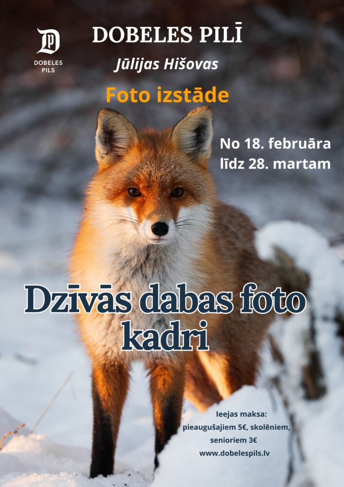Dobeles pilī no 18. februāra līdz 28. martam apskatāma Dobeles novada Lielauces iedzīvotājas, fotogrāfes Jūlijas Hišovas darbu izstāde “Dzīvās dabas foto kadri”, kurā apkopoti darbi, kas tapuši vairāku gadu garumā.